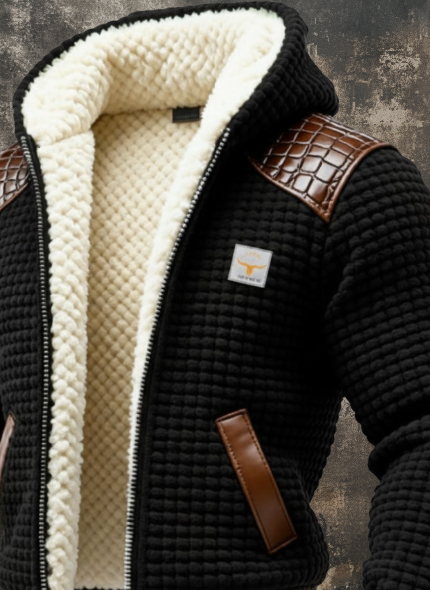 Chaqueta texturizada con ribete de cuero repujado
