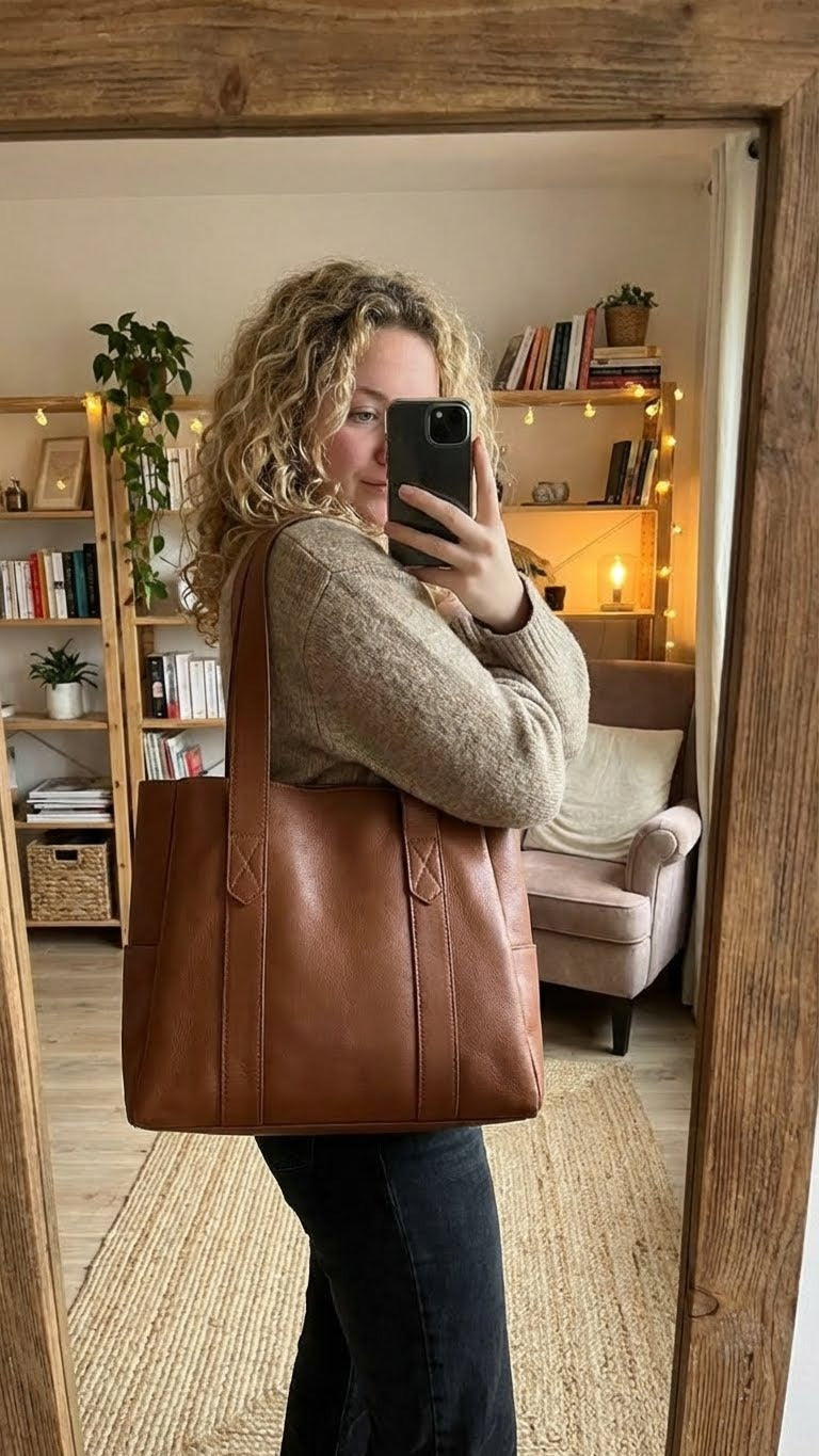 Me daba miedo que el cuero fuera rígido, pero es todo lo contrario. Es suave, resistente y muy agradable de llevar al hombro.