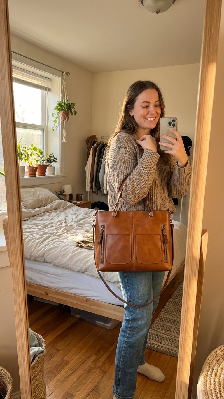 Al verlo en la web me gustó, pero en persona es todavía más bonito. El cuero se siente de buena calidad y el tamaño es justo lo que necesitaba para el día a día.
